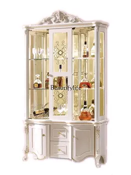 European-Style Wall Home Living Room Glass Display Luxury Curio Cabinet Locker with Door