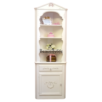 Solid wood TV cabinet French retro glass storage locker Medieval living room high floor