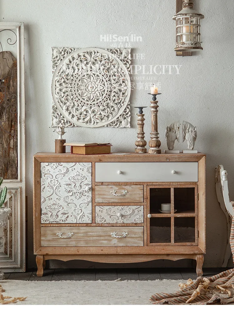 White Living Room Cabinets Wood Rustic Nordic French Utility Storage Cabinet Doors Accent Carved Armadi Aperti Home Furniture
